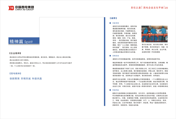 “XD”标识是企业核心理念的延伸,由文字和图形两部分组成。标识造型饱满、流畅,稳健中富有变化,平实中蕴含激情,具有鲜明的时代气息和行业特征。