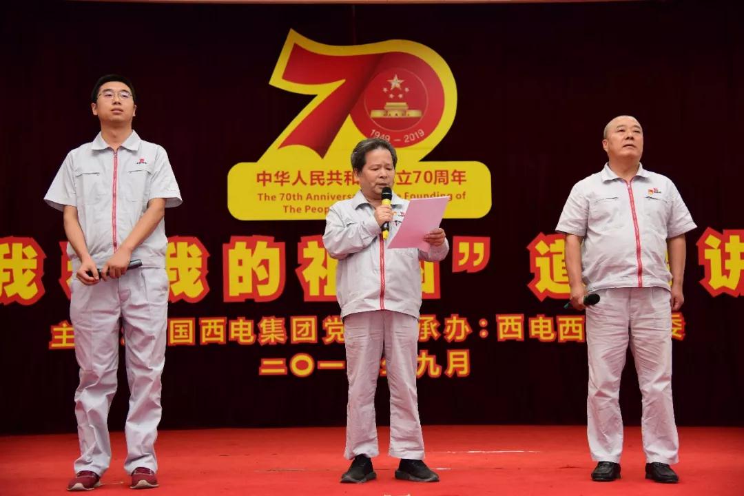 活动中,展播了各单位《我和我的祖国》系列视频,与会同志同唱了爱国歌曲《五星红旗迎风飘扬》,聆听了诗歌朗诵《我的祖国》和澳门新莆京游戏app大厅故事《争做顶梁柱,腾飞中国龙》,欣赏了展现工人力量的舞蹈表演《奋进新时代》,三位“建国”同志结合个人成长、企业变迁、祖国发展谈了自己的切身感悟,澳门新莆京游戏app大厅西变、西开有限两家单位分别作了关于道德讲堂的经验交流,与会人员共同欣赏了歌伴舞《我和我的祖国》。现场活动气氛热烈,大家情绪高昂,故事生动感人,歌声优美嘹亮。