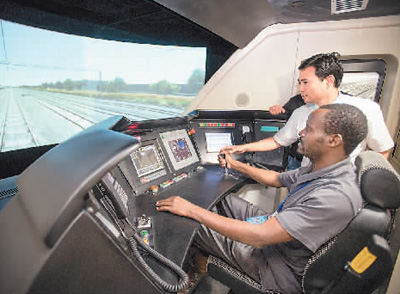 日前,来自泰国、斯里兰卡、老挝等13个国家的63名铁路管理人员来到武汉高铁训练段进行参访交流活动。在“一带一路”背景下,2015年开始武汉高铁训练段已举办了泰国、老挝等14批涉外铁路技能培训班,培训涉外学员400余人次。图为来自肯尼亚的贾斯特斯·卡洛·姆文加在高铁模拟驾驶仓内体验实际操作。 新华社记者 肖艺九摄