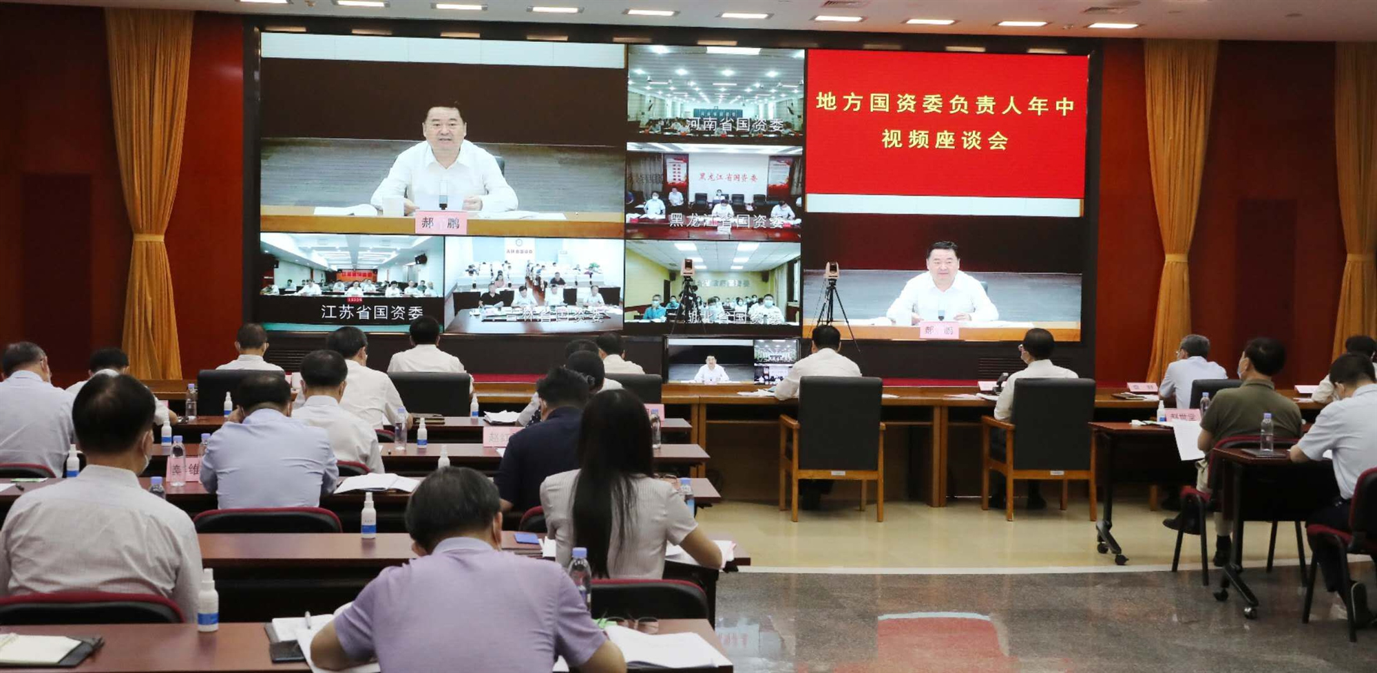 7月22日,国务院国资委召开地方国资委负责人年中视频座谈会,总结2020年上半年工作,交流经验做法,研究推动下半年重点任务。国务院国资委党委书记、主任郝鹏主持会议并讲话强调,要深入学习贯彻习近平总书记关于统筹推进疫情防控和经济社会发展的系列重要讲话和重要指示精神,坚决贯彻落实党中央、国务院决策部署,围绕落实“六稳”“六保”要求,继续落实好今年年初地方国资委负责人会议工作安排,在各地党委、政府领导下,更加聚焦推动国资系统监管企业总体效益实现稳增长,更加聚焦抓好国企改革三年行动方案落实落地,激发国有企业市场主体活力,弘扬企业家精神,加快推动高质量发展,不断增强国有经济竞争力、创新力、控制力、影响力、抗风险能力。国务院国资委党委委员陈超英、翁杰明、任洪斌、袁野、彭华岗出席会议。