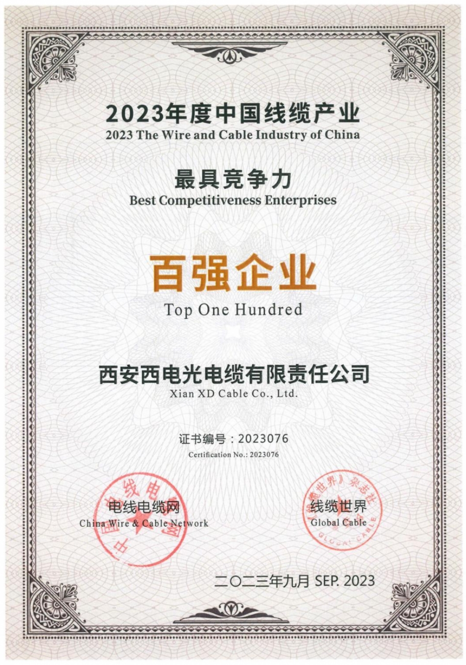 近日,以“强链谋局 聚智发展”为主题的2023年中国电线电缆行业大会发布了“2023年度中国线缆产业最具竞争力企业”名单。中国澳门新莆京游戏app大厅集团所属澳门新莆京游戏app大厅光电缆入选“中国线缆产业最具竞争力企业100强”榜单。