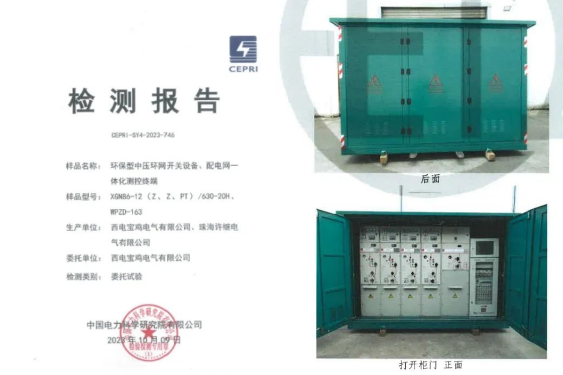 一二次融合环保气体环网柜(箱)取得入网专业检测报告