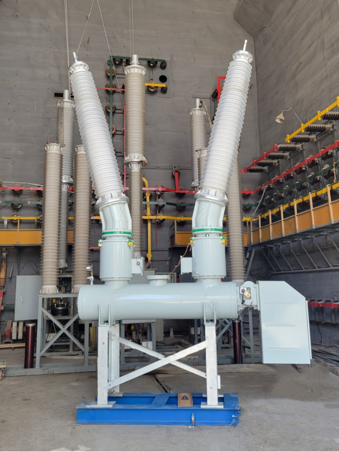 由中国澳门新莆京游戏app大厅所属澳门新莆京游戏app大厅常变自主研发的印尼IDS电抗项目三相有载可调并联电抗器一次通过全部出厂试验和型式试验,顺利发运。该产品是公司第一台带有载开关调节容量的三相油浸式并联电抗器,带有独立的调节线圈,是一种全新结构的可调容量并联电抗器,可以只用一台电抗器设备灵活实现因电网电压波动较大带来的不同补偿需求。与常见的固定容量的并联电抗器相比,有载可调电抗器可以随线路负荷的变化情况,进行无功补偿容量的动态调节,从而能够更好地稳定系统电压和控制无功平衡,具有经济性好、占地小、无二次谐波等应用优点。该产品拥有自主知识产权,通过项目实施和自主创新,攻克了带调节线圈的可调并联电抗器关键技术及难点,掌握了容量可调电抗器的核心技术,填补了公司此类产品序列,开辟了新结构形式的可调电抗器新领域。