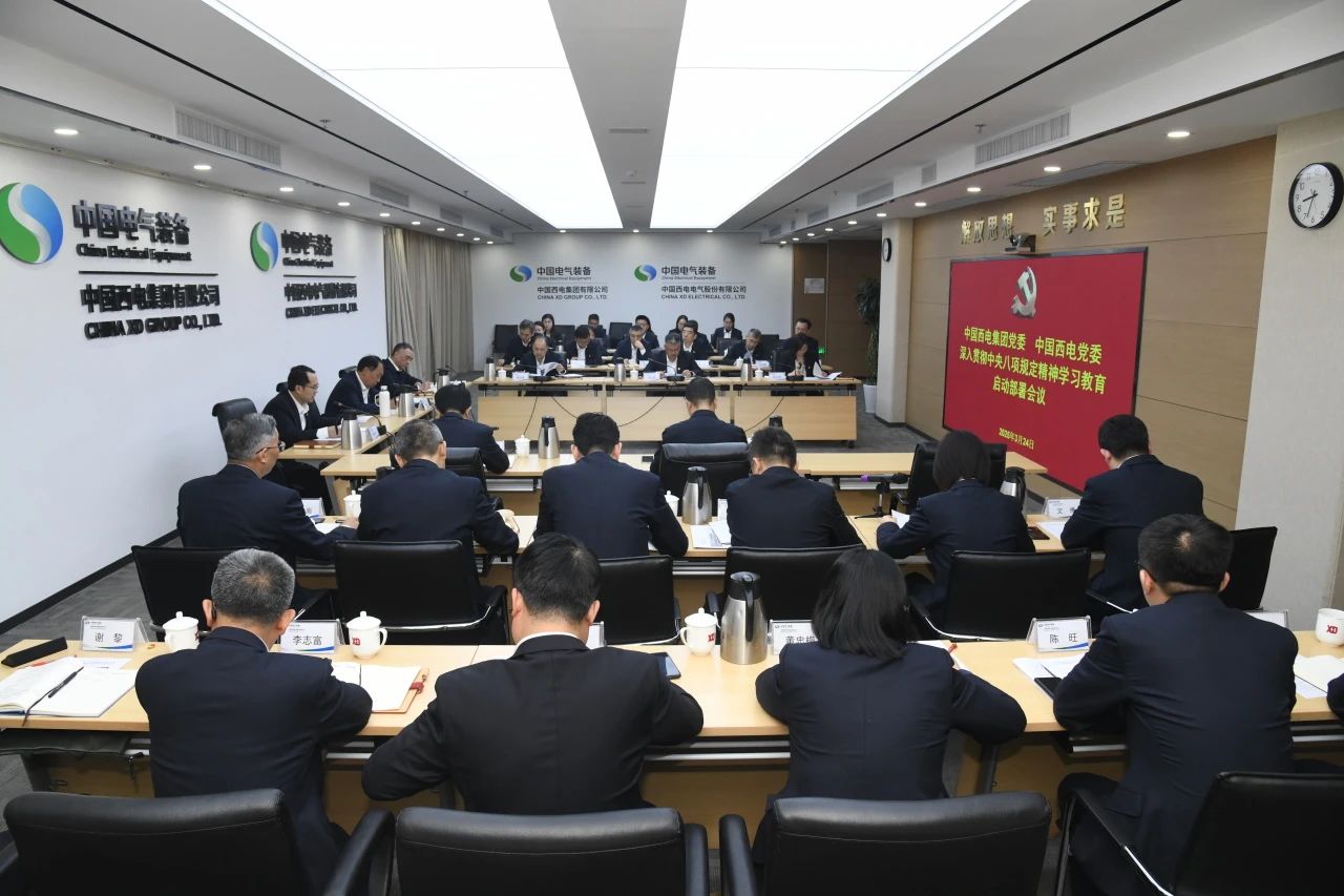 3月24日,中国澳门新莆京游戏app大厅集团党委召开扩大会议暨党建工作领导小组会议,认真学习贯彻习近平总书记关于深入贯彻中央八项规定精神学习教育的重要讲话和重要指示精神,传达学习中央党的建设工作领导小组会议、中共中央办公厅《关于在全党开展深入贯彻中央八项规定精神学习教育的通知》精神,贯彻落实国务院国资委党委、中国电气装备党委部署要求,研究审定公司党委深入贯彻中央八项规定精神学习教育工作方案,全面启动部署公司党委开展深入贯彻中央八项规定精神学习教育工作。公司党委书记、董事长、总经理韩兵出席会议并讲话。公司领导班子成员出席会议并作交流发言。