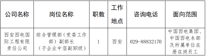 本次面向公司内部公开招聘岗位信息如下: