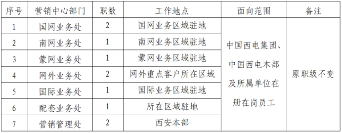 本次面向公司内部公开招聘岗位信息如下: