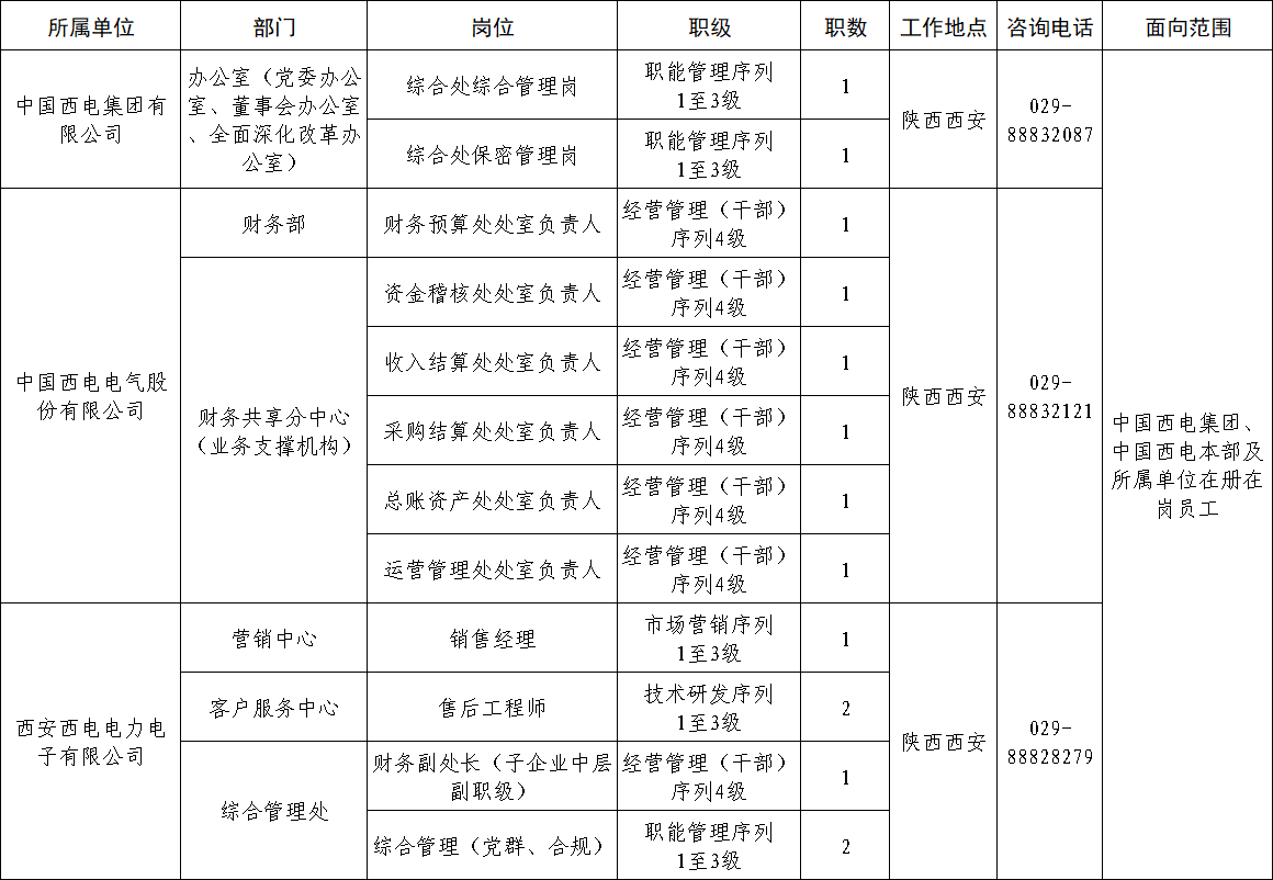 本次面向公司内部公开招聘岗位信息如下: