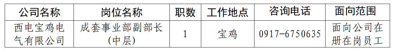 澳门新莆京游戏app大厅宝鸡电气有限公司是中国澳门新莆京游戏app大厅集团中低压开关与成套设备配电业务板块核心企业。公司产品涵盖空气绝缘开关柜、C-GIS充气柜、充气环网柜、固体绝缘环网柜、低压开关柜、预装式变电站、户内断路器及开关元件、户外断路器等。公司作为国家“中低压输配电装备智能制造新模式”试点单位,拥有国际一流的自动化生产线和加工设备,并努力建设成为中国技术质量水平最高、比肩国际先进企业的全球一流中低压成套配电系统解决方案平台。本次面向公司内部公开招聘岗位信息如下: