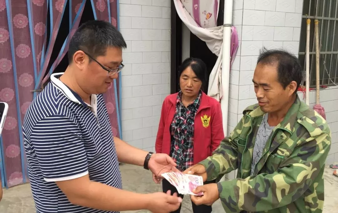 ▲周晓卫为贫困户送去帮扶金